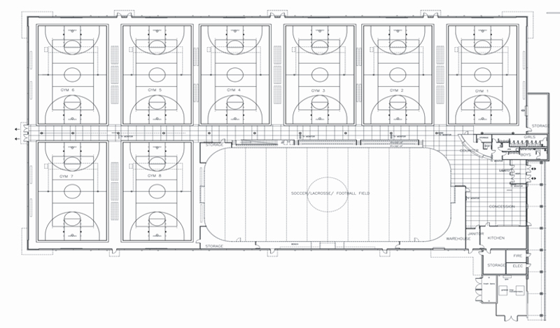 95,000 square foot sports complex 8 full-size hardwood multi-purpose basketball courts.