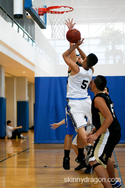 The reward the Knights would get as a result of the win would be a chance to upset the top seeded, undefeated, and 4-time defending Champion NY USAB Warriors 18’s. But there would be no Cinderella magic this afternoon, as the Warriors took advantage of the spent Knights, taking it easy in a 58-23 walkthrough. Devin Figueroa (18 pts, 4 treys, 2 assists), Kevin Cai (a dozen points and four 3’s), and Kevin Chang (9 points, 4 assists) led the New York assault. The other semifinal was the one that we all wanted to watch, as the 2nd seeded NY Young Life Rockits (2008 Runners Up, 2009 Pre-NACBAIT Classic Champs) would play the 3rd seeded NY ISS Flights. Last year, these two teams had also faced each other in the Semifinals, with the Rockits staging an improbable win as they came from behind for a 24-21 win. That low scoring game saw ISS’ legitimate NACBAIT title aspirations vanish into thin air. Coach Mike Mei’s YL Rockits came into this year’s Tournament as the one team that had a real shot at unseating USAB. But in this type of situation, no team is going to just say, “Mercy” or wave the white flag. Plus, ISS Flights remembered what it was like last year to have their best chance at a title slip out of their clutching hands in the Semifinals. You know what they say about payback, and Coach Yeung’s ISS was a team with nothing to lose and revenge on their minds. They made it a point to do their best to prevent Jimmy Lau (2-time All NACBA PG, 11 pts, 9-10 ft) from hitting his sweet spots in the lane, and to keep bigman Eddie Zheng (7 points) off the glass. On offense, lanky forward Peter Nguyen (10 pts, 6-7 ft) was the go to guy at the start as he continually took it to the cup and got to the free throw line. The Flights garnered a 7 point lead by halftime, and was thinking upset time. But Jimmy Lau got cooking in the second half, and Cheuk Wong was able to drop some buckets too, as the Rockits pulled themselves back into it. All-Tourney pick Jason Wu (17 pts, 9-10 ft) turned on the afterburners for ISS, as he got into the flow. The Flights put the game on ice, hitting swishing in 12 of 15 free throws in the second half as they advanced 39-34.